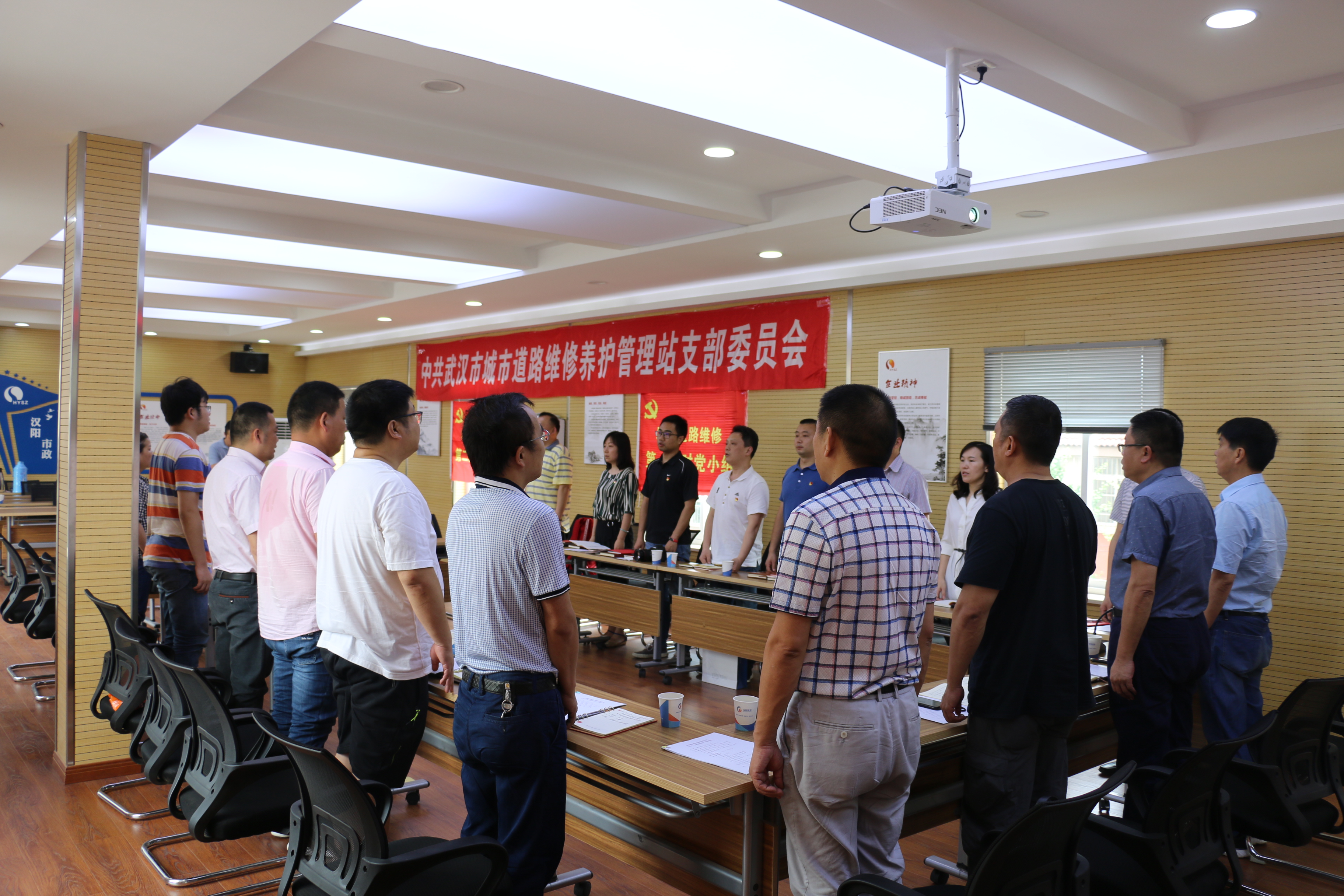 2019年6月6日上午9:00,武漢市道路維修養(yǎng)護管理站聯(lián)合參建單位漢陽市政維修一隊,攜手開展六月份主題黨日活動。武漢市城建局副局長向暉、市道路維修養(yǎng)護管理站站長李華、副站長湯景舟、丁繼斌以及漢陽市政集團有限公司副總經(jīng)理邢榮斌、漢陽市政維修一隊黨支部書記兼隊長王繁等同志全程參加了本次活動。