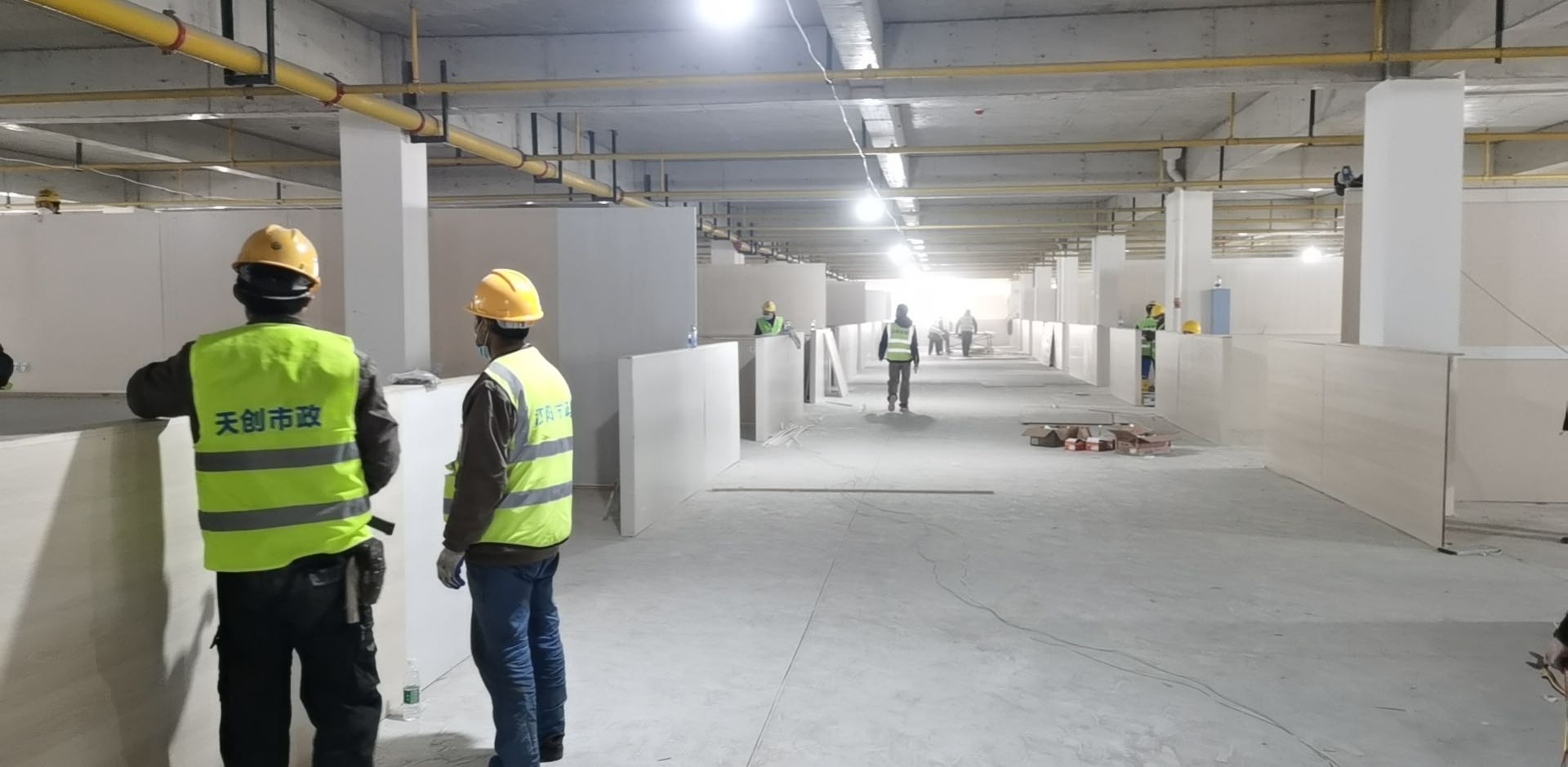 ? ? ? 截止2月20日凌晨3點,第二、三階段完工,22層樓三區(qū)兩通道隔斷施工任務全部完成。2月20日上午,經(jīng)院方檢查合格后,兩棟樓正式交付驗收。后續(xù)將陸續(xù)接收更多新冠肺炎患者。