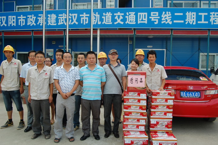 7 月 8 號,集團公司黨委頂著烈日來到鸚鵡洲大橋、玫瑰苑地鐵、福利院、惠民苑、開發(fā)區(qū)造紙東路等工地,向三伏天堅守一線施工的勞動者們表示親切慰問,送去絲絲清涼。集團公司領(lǐng)導對不畏高溫、堅持在一線辛勤工作的工人們表示問候和感謝,對他們拼搏奉獻的敬業(yè)精神予以很高的贊賞,并送上了慰問品——風油精、人丹、綠豆、啤酒等。希望大家在努力工作的同時,注意休息,保重身體,避開高溫時段作業(yè),嚴防中暑。