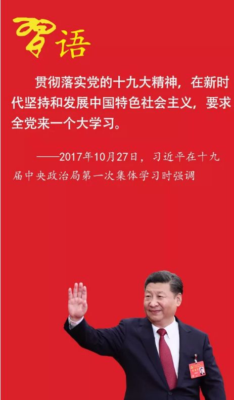 學(xué)習(xí)貫徹黨的十九大精神,就要認(rèn)真學(xué)習(xí)黨的十九大報(bào)告和新修訂的黨章,重中之重是要學(xué)習(xí)領(lǐng)會習(xí)近平新時(shí)代中國特色社會主義思想。