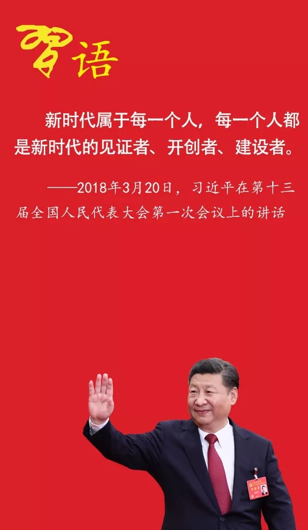 新時代屬于每一個人,每一個人都是新時代的見證者、開創(chuàng)者、建設(shè)者。只要精誠團結(jié)、共同奮斗,就沒有任何力量能夠阻擋中國人民實現(xiàn)夢想的步伐!