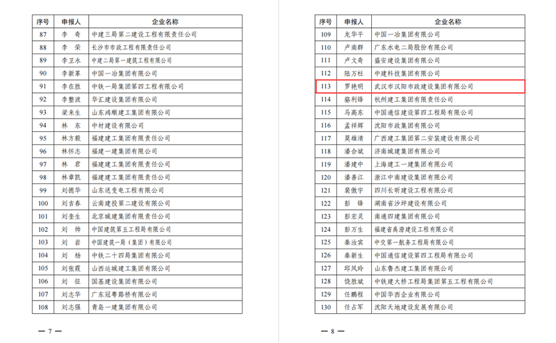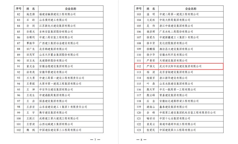 近日,中國(guó)施工企業(yè)管理協(xié)會(huì)傳來(lái)好消息,漢陽(yáng)市政黨委書記、董事長(zhǎng)嚴(yán)悌文榮獲“2021年工程建設(shè)誠(chéng)信企業(yè)家”,漢陽(yáng)市政七公司總工程師羅艷明榮獲“2021年工程建設(shè)誠(chéng)信項(xiàng)目經(jīng)理”。