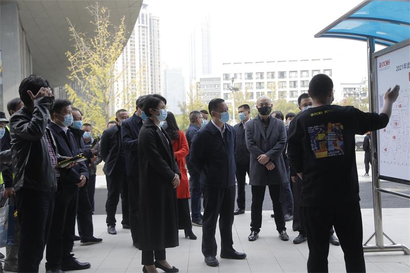 10月22日下午,武漢市委常委、副市長陳勁超,漢陽區(qū)委書記徐麗、區(qū)長范禮奎,市城建局局長、黨組書記夏平,區(qū)建設(shè)局局長胡紅勝等赴第六屆武漢設(shè)計(jì)雙年展主展館建設(shè)現(xiàn)場檢查指導(dǎo)搭建布展工作。漢陽市政黨委書記、董事長嚴(yán)悌文陪同調(diào)研。