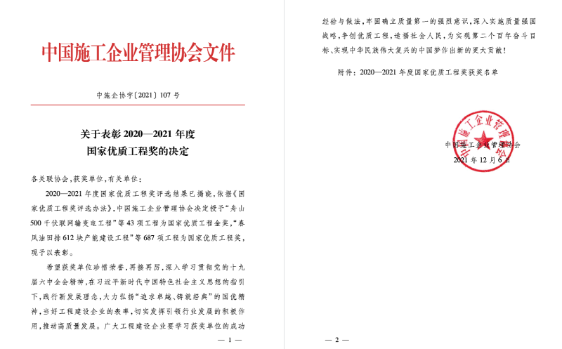12月7日,中國施工企業(yè)管理協(xié)會發(fā)布2020-2021年度第二批國家優(yōu)質(zhì)工程獎名單,漢陽市政承建的東湖綠道二期工程、金山大道工程、武漢食品檢驗中心工程、武漢軌道交通七號線工程共4個項目獲此殊榮,獲獎數(shù)量創(chuàng)歷史新高。今年獲評項目首次覆蓋園林、橋梁、軌道交通、房建四大專業(yè)領(lǐng)域,公司房建項目在“國家優(yōu)質(zhì)工程獎”實(shí)現(xiàn)零的突破。截止目前,漢陽市政已累計榮獲10項“國家優(yōu)質(zhì)工程獎”。