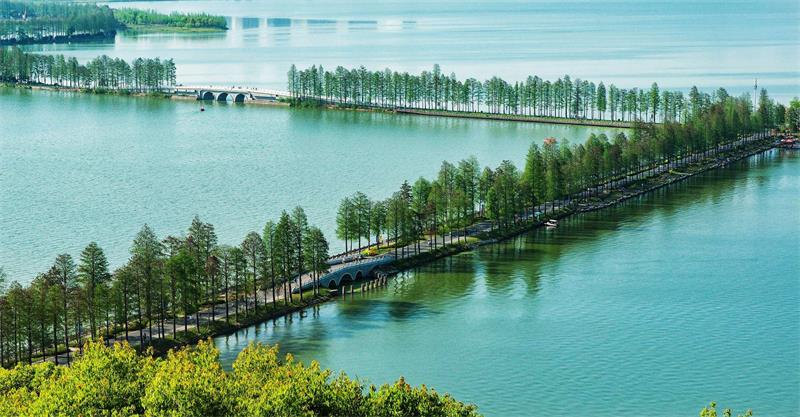 東湖綠道二期是國內(nèi)首條城區(qū)5A級旅游景區(qū)綠道,定位為世界級環(huán)湖綠道,致力于建設(shè)東湖城市生態(tài)綠心,傳承楚風(fēng)漢韻,打造世界級城中湖典范。工程位于武漢市東湖旅游風(fēng)景區(qū)內(nèi),環(huán)繞湯菱湖、后湖,串聯(lián)馬鞍山森林公園和白馬景區(qū)??傞L約58公里。包含湖澤道等4條主題綠道,建設(shè)內(nèi)容包括:道路、景觀、橋梁、園林綠化、驛站及智慧綠道系統(tǒng)工程等。項目總投資約30.6億元,于2017年6月15日正式開工建設(shè),2018年4月28日通過驗收并投入使用。