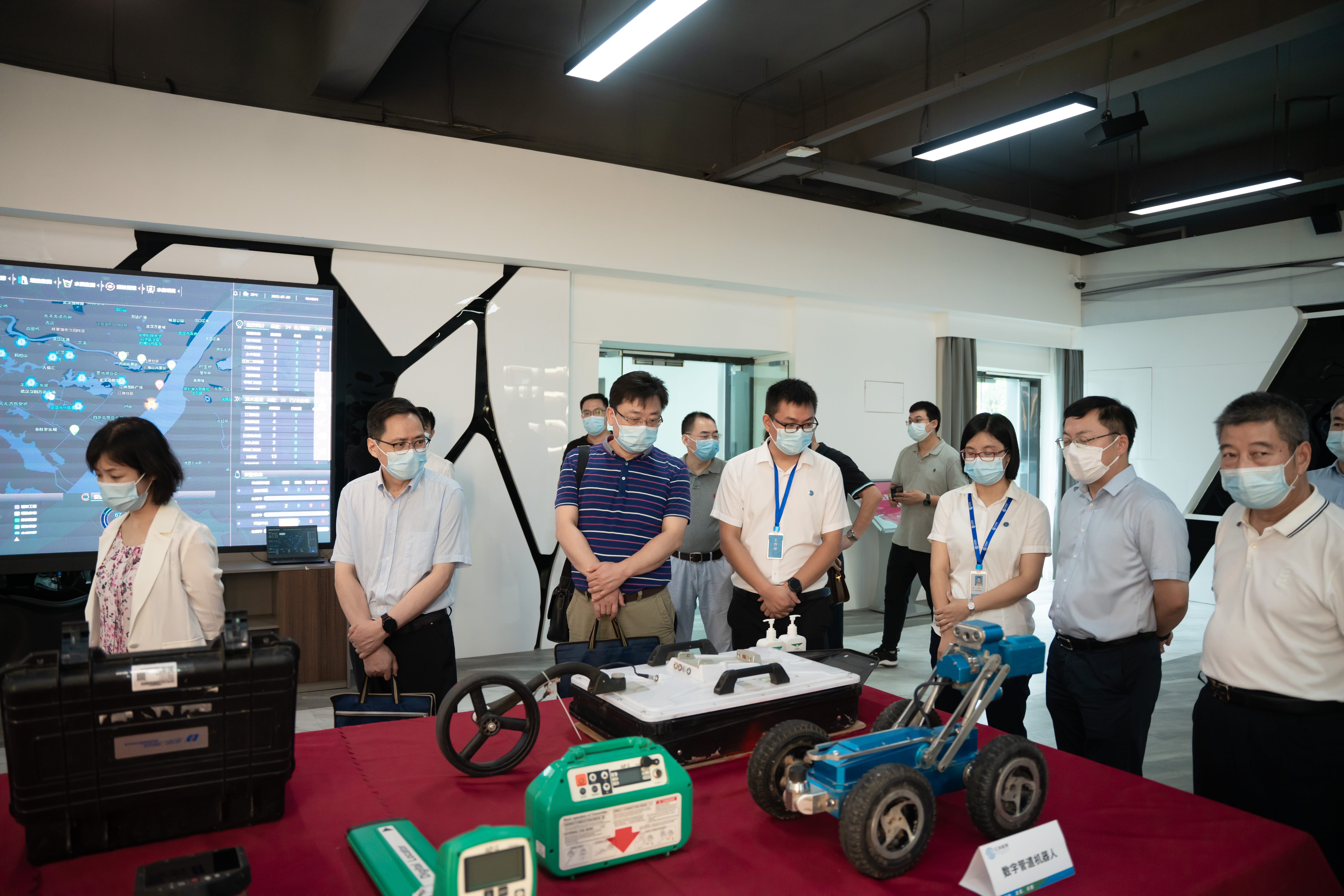 調(diào)研組一行首先參觀了檢測(cè)公司的實(shí)驗(yàn)區(qū),在講解員的介紹下了解了道路綜合檢測(cè)車、三維雷達(dá)探測(cè)車以及落錘車的基本工作原理。隨后,調(diào)研組體驗(yàn)了房屋巡查體感操作系統(tǒng),近距離參觀了數(shù)字管道機(jī)器人、TZ12全站儀、經(jīng)緯 M300 RTK、禪思P1等一批高新設(shè)備。漢陽市政檢測(cè)公司始終聚焦智能化檢測(cè),大力引進(jìn)核心技術(shù)和高新人才,擁有一大批先進(jìn)的檢測(cè)設(shè)施和完備的資質(zhì)參數(shù)。十四五以來,堅(jiān)定不移地貫徹落實(shí)十四五規(guī)劃精神,將提質(zhì)增效作為企業(yè)發(fā)展首要目標(biāo),在今年還取得了湖北省“專精特新”企業(yè)稱號(hào)。