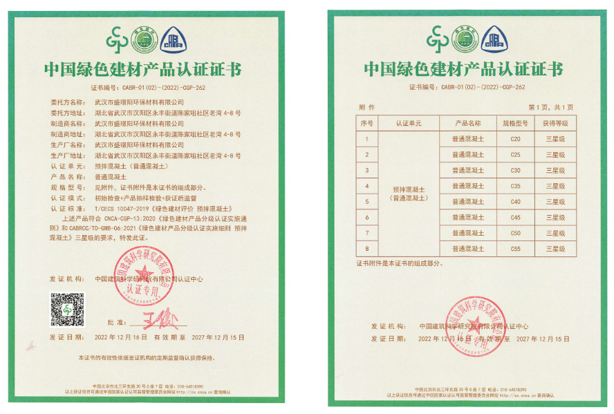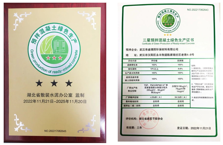 ? ? 近日,喜報傳來,漢陽市政盛璟陽公司順利通過評審程序,相繼取得了“三星預拌混凝土綠色生產(chǎn)評價證書”“綠色建材三星認證證書”,成為一家榮獲“綠色生產(chǎn)+綠色建材”雙三星認證企業(yè)。
