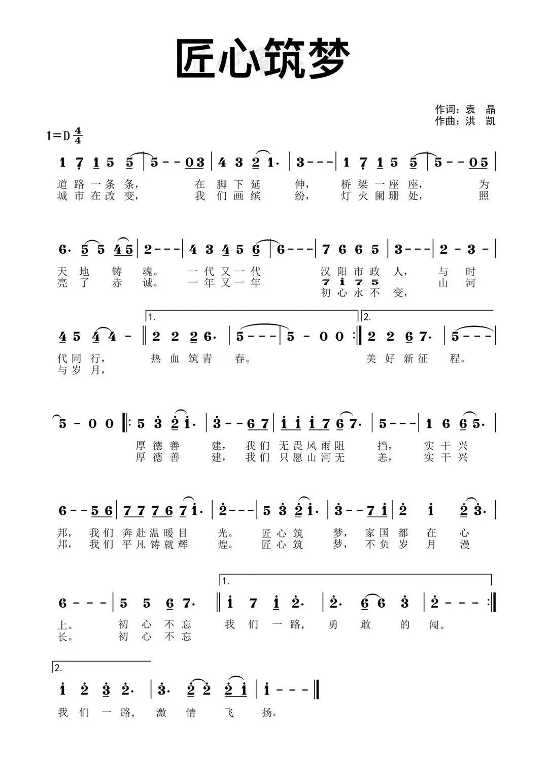 ? ?《匠心筑夢》由袁晶作詞,洪凱作曲,節(jié)奏鏗鏘有力、雄壯昂揚,氣勢熱情澎湃、朝氣蓬勃。司歌承載著漢陽市政人為國為民盡心盡責的不變初心,唱響了新一代漢陽市政青年不負歲月用熱血繪就美好藍圖的壯志豪情。