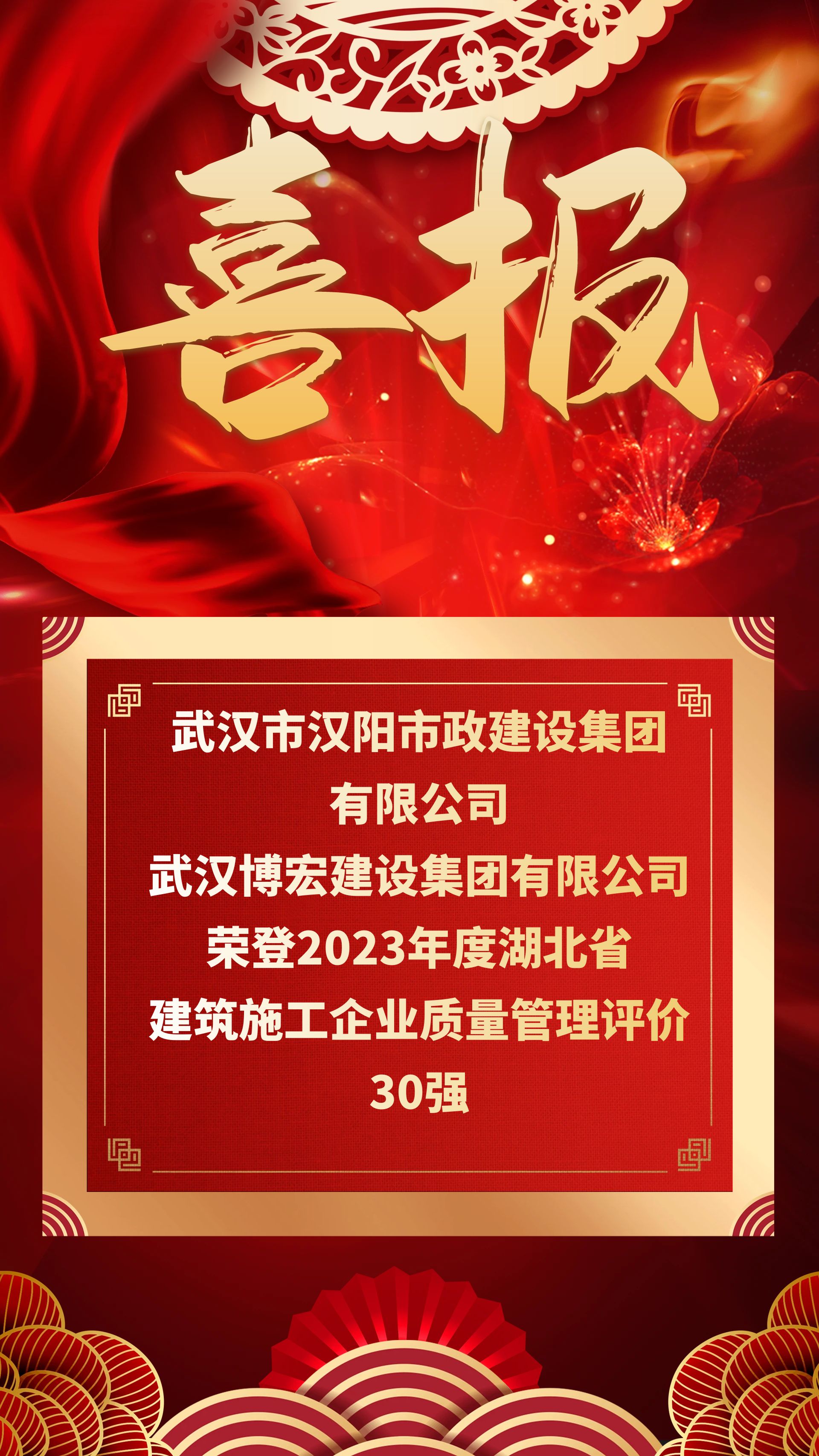 近日,湖北省建設(shè)工程質(zhì)量安全協(xié)會公布2023年度湖北省建筑施工企業(yè)質(zhì)量管理評價30強(qiáng)名單,漢陽市政及其下屬子公司博宏建設(shè)再次榮登榜單。