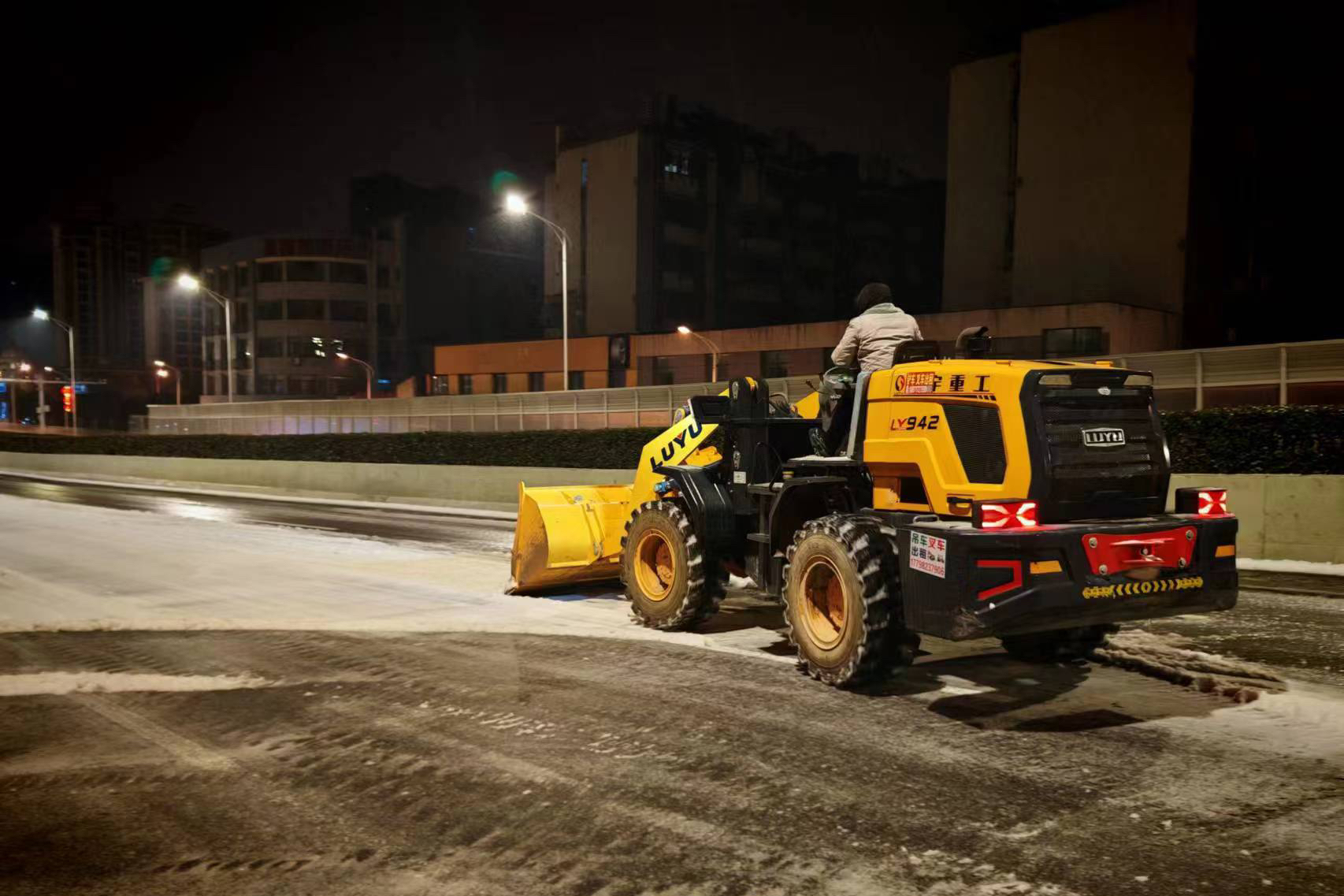 24小時(shí)不間斷,漢陽市政融雪除冰應(yīng)急搶險(xiǎn)突擊隊(duì)通宵奮戰(zhàn),積極投身到保暢保通工作當(dāng)中,駕駛?cè)谘﹦┤霾架?、鏟車在路面循環(huán)作業(yè),在漢陽大道、江城大道、晴川大道、鸚鵡大道、國博大道、墨水湖北路、琴臺大道、楊泗港、龍陽大道、仙女山高架、二環(huán)線高架等重點(diǎn)區(qū)域,通過“人機(jī)聯(lián)合作戰(zhàn)”的作業(yè)模式,頂風(fēng)鏟雪,保障城市交通暢通;雪中送炭,幫助受困車輛脫險(xiǎn)。同時(shí),應(yīng)急人員積極幫助小區(qū)鏟雪,全力保障市民出行安全。