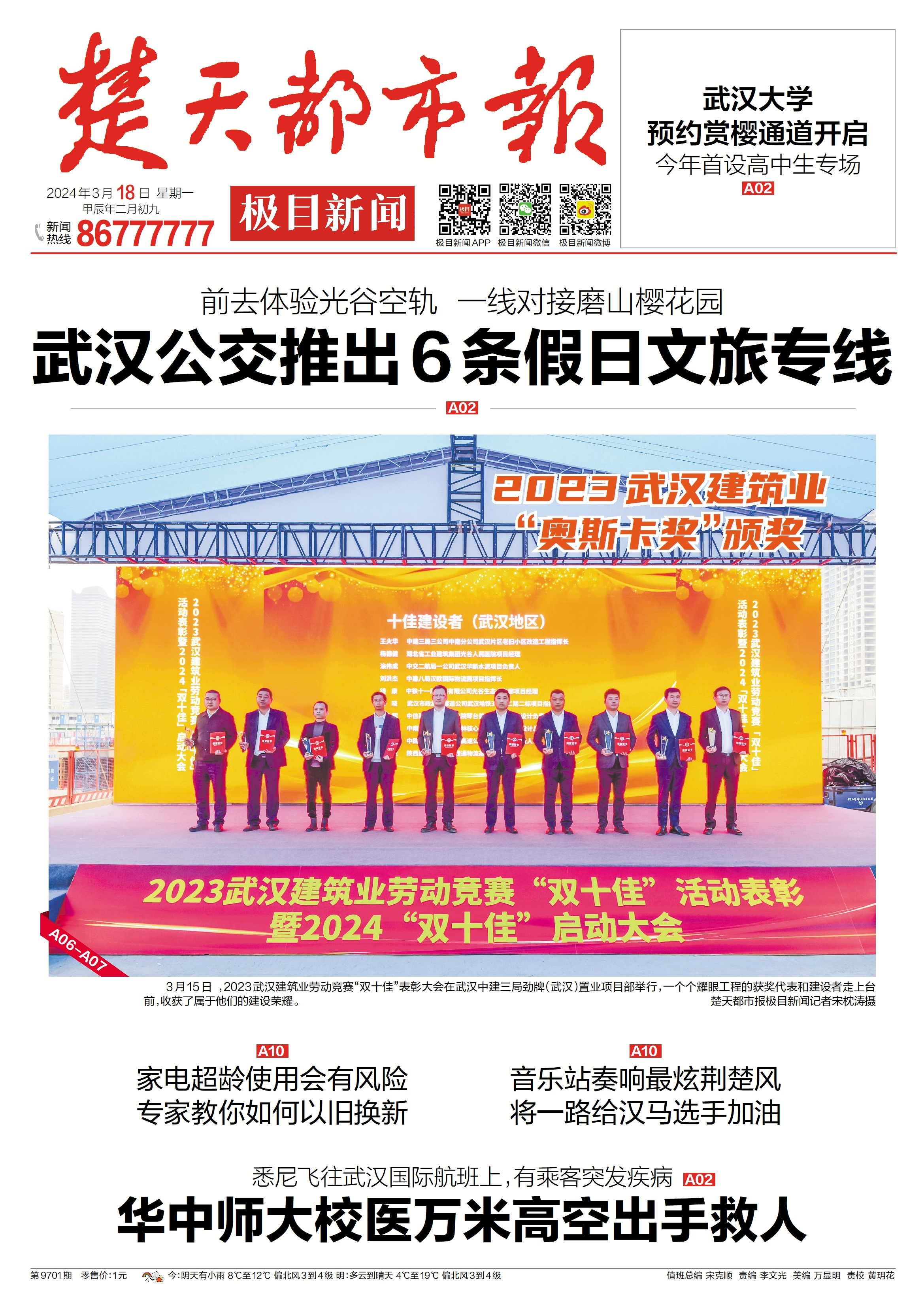 楚天都市報(bào)推出《2023武漢建筑業(yè)“奧斯卡獎(jiǎng)”頒獎(jiǎng)》專版報(bào)道。