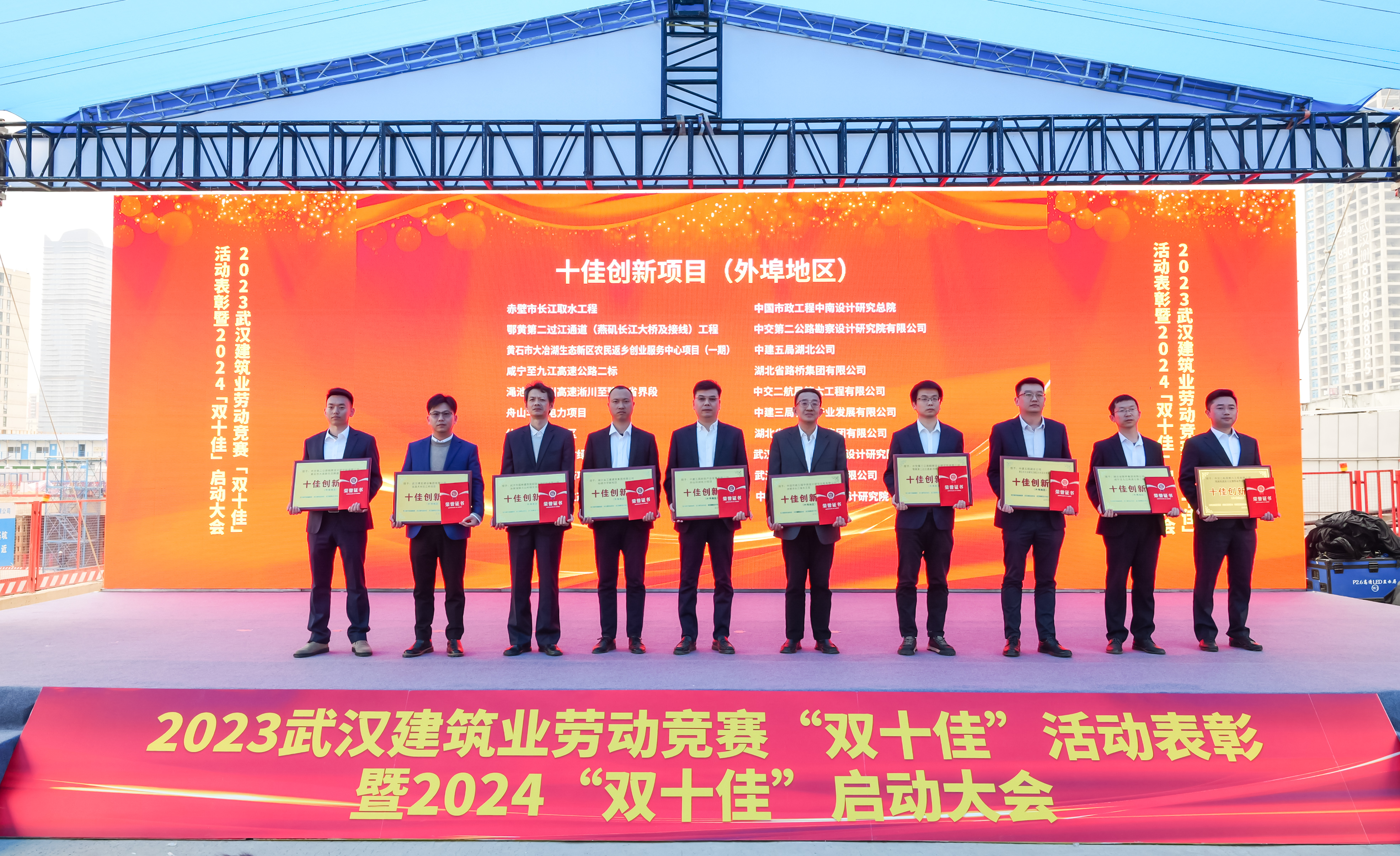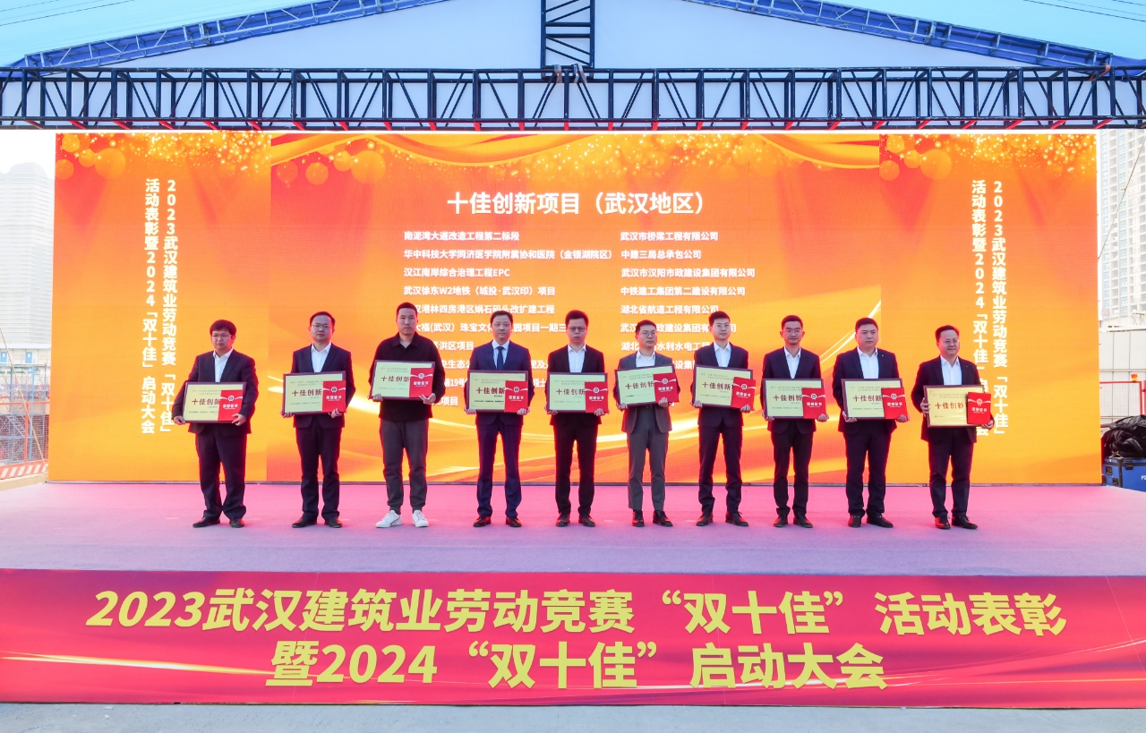 3月15日下午,被譽為武漢建筑行業(yè)“奧斯卡獎”的2023年武漢建筑及勘察設計行業(yè)勞動競賽“雙十佳”活動頒獎典禮在漢舉行,漢陽市政漢江南岸綜合治理工程EPC項目被評為“湖北省工人先鋒號”,同時獲評“十佳創(chuàng)新項目(武漢地區(qū))”。宜昌天創(chuàng)覽江府項目獲評“十佳創(chuàng)新項目(外埠地區(qū))”。項目經(jīng)理管鵬獲評“優(yōu)秀建設者(武漢地區(qū))”。