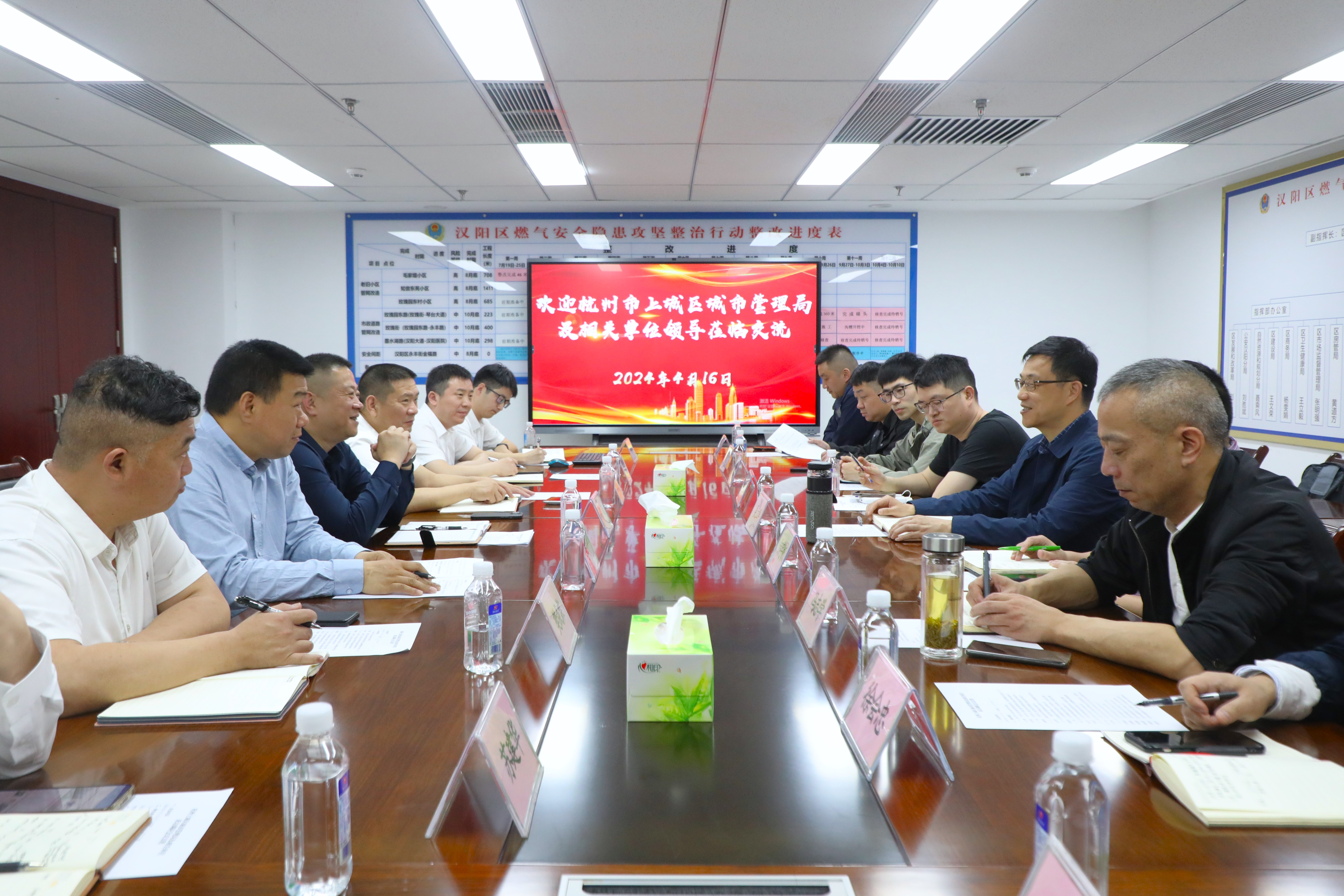 4月16日,杭州市上城區(qū)城市管理局黨委委員、區(qū)城市管理綜合發(fā)展中心主任吳立群帶領(lǐng)杭州上城城管局、城市管理發(fā)展中心、杭州路通、杭州路橋蒞臨漢陽區(qū)調(diào)研座談。武漢市漢陽區(qū)城市管理執(zhí)法局黨委委員、副局長胡敏、漢陽城建黨委委員、副總經(jīng)理邢榮斌、漢陽市政運(yùn)維公司總經(jīng)理涂軼銘等陪同調(diào)研。