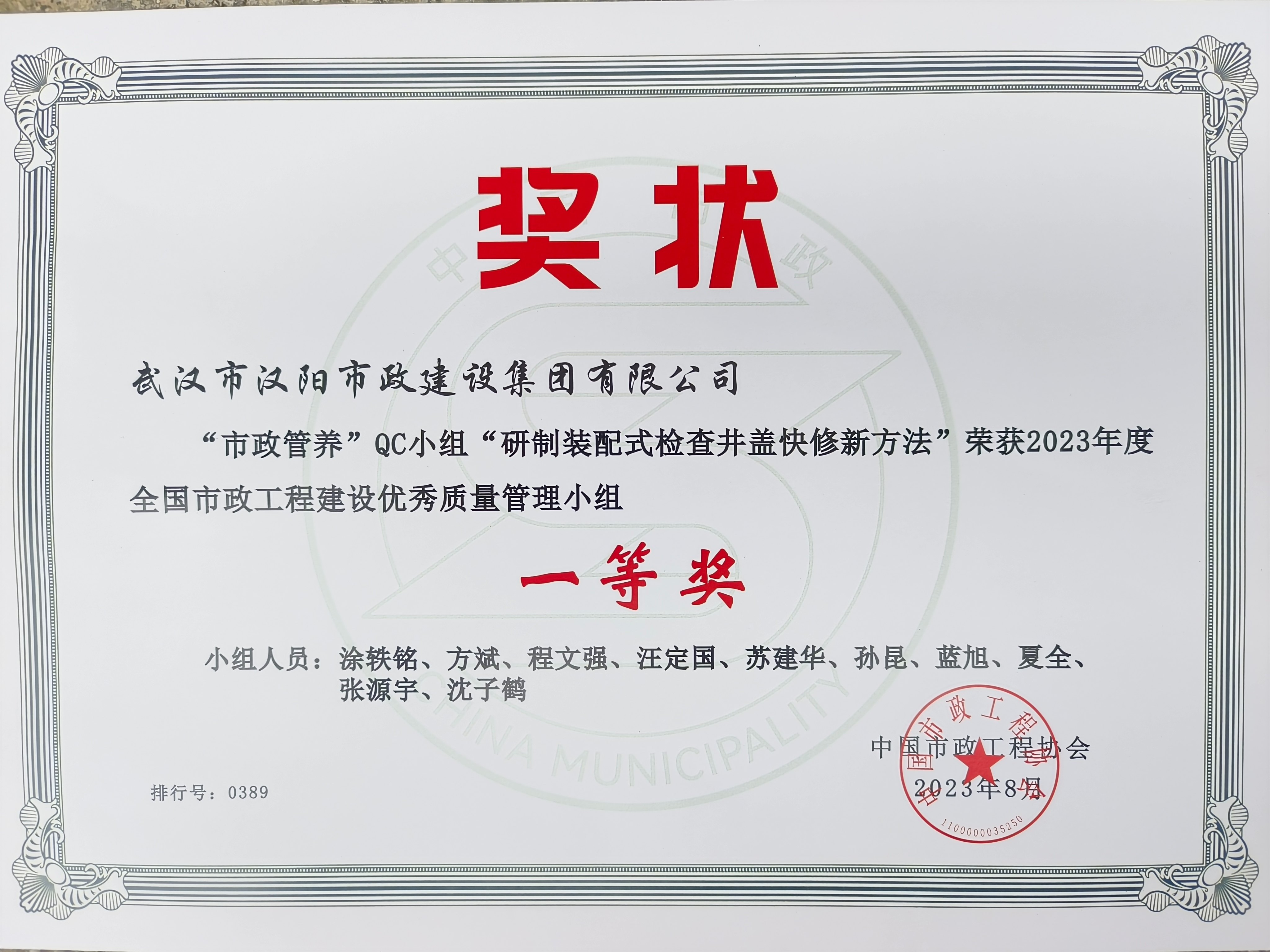 最終,通過查閱檢查井相關(guān)資料、實地勘測勘察、試驗分析,沈子鶴團隊探索出一套裝配式檢查井蓋快速維修施工新技術(shù)。此項針對傳統(tǒng)維修技術(shù)存在的井蓋座易變形、施工完成后養(yǎng)護期長、質(zhì)量難把控等問題進行改進,采用T型“六防”井蓋與道路同色混凝土預(yù)制裝配形成整體,相對常規(guī)維修方案使井蓋底座與原路面凹槽受力面擴大,可以很好地解決檢查井區(qū)域不均勻沉降的問題;同時,其安裝速度快,可很好適應(yīng)道路維修施工作業(yè)時間短的特殊情況。目前裝配式檢查井近千座應(yīng)用試點效果良好,優(yōu)化工藝降本增效。“ 研制裝配式檢查井蓋快修新方法”獲中國市政工程協(xié)會一等獎、湖北省市政工程協(xié)會一等獎;“裝配式檢查井蓋快修工藝研發(fā)”獲湖北省建設(shè)工程質(zhì)量安全協(xié)會一等獎。