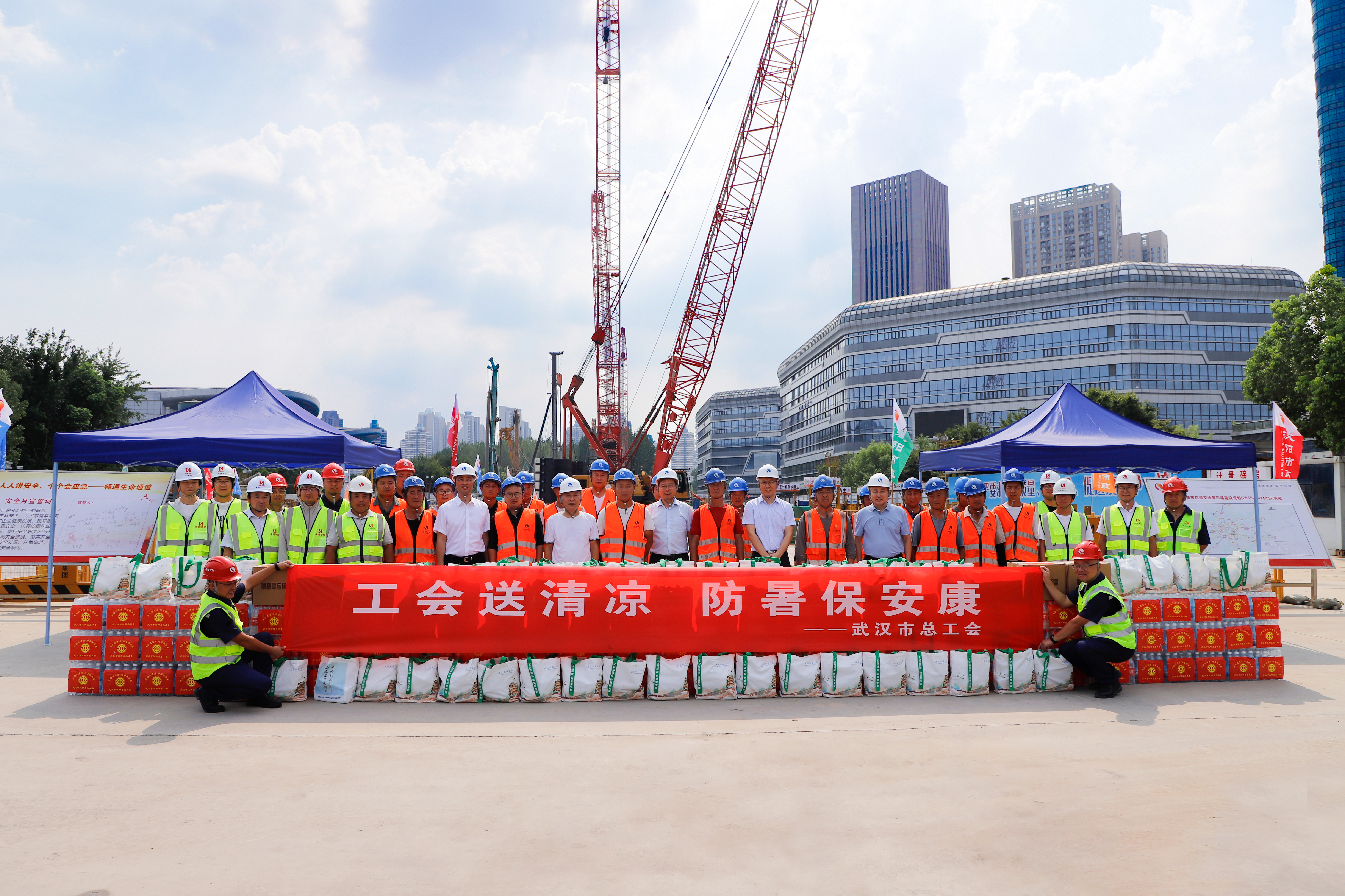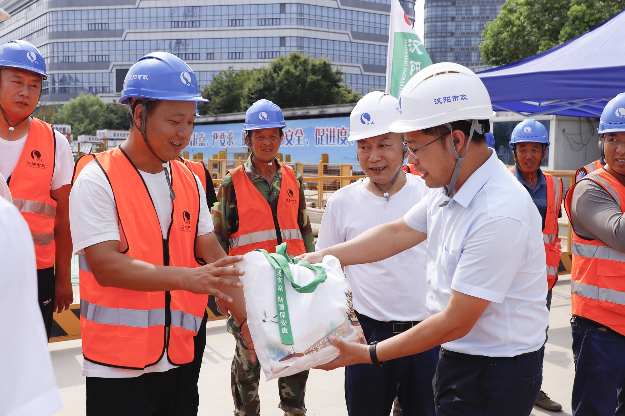 7月24日下午,武漢市總工會副主席劉斌,社聯(lián)部處長鄧向軍,漢陽區(qū)委副書記、區(qū)政法委書記黃江波,區(qū)人大常委會副主任、區(qū)總工會主席周立強,區(qū)總工會常務(wù)副主席李鐘,區(qū)總工會副主席陳新樹一行來到11號線四期土建工程第3標(biāo)段項目現(xiàn)場開展“工會送清涼”高溫慰問活動,為高溫下堅守一線的建設(shè)者們送去了礦泉水、鹽汽水、藿香正氣水等防暑降溫物資。漢陽市政黨委委員、總經(jīng)理王智高,黨委副書記、紀(jì)委書記冷雪陪同慰問。
