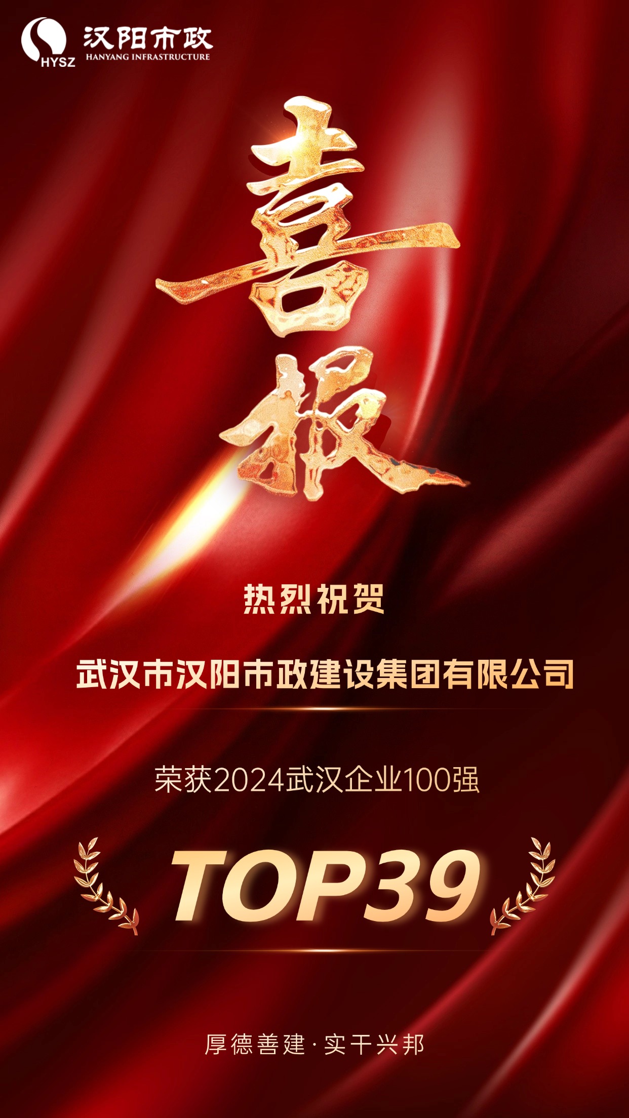 9月27日,武漢企業(yè)聯(lián)合會(huì)、武漢企業(yè)家協(xié)會(huì)和武漢發(fā)展戰(zhàn)略研究院聯(lián)合發(fā)布《2024武漢企業(yè)100強(qiáng)、制造業(yè)企業(yè)100強(qiáng)、服務(wù)業(yè)企業(yè)100強(qiáng)分析報(bào)告》。漢陽市政榮登武漢企業(yè)100強(qiáng)榜單第39位,相較上年再升7位!截至目前,漢陽市政已連續(xù)8年上榜武漢企業(yè)100強(qiáng)。